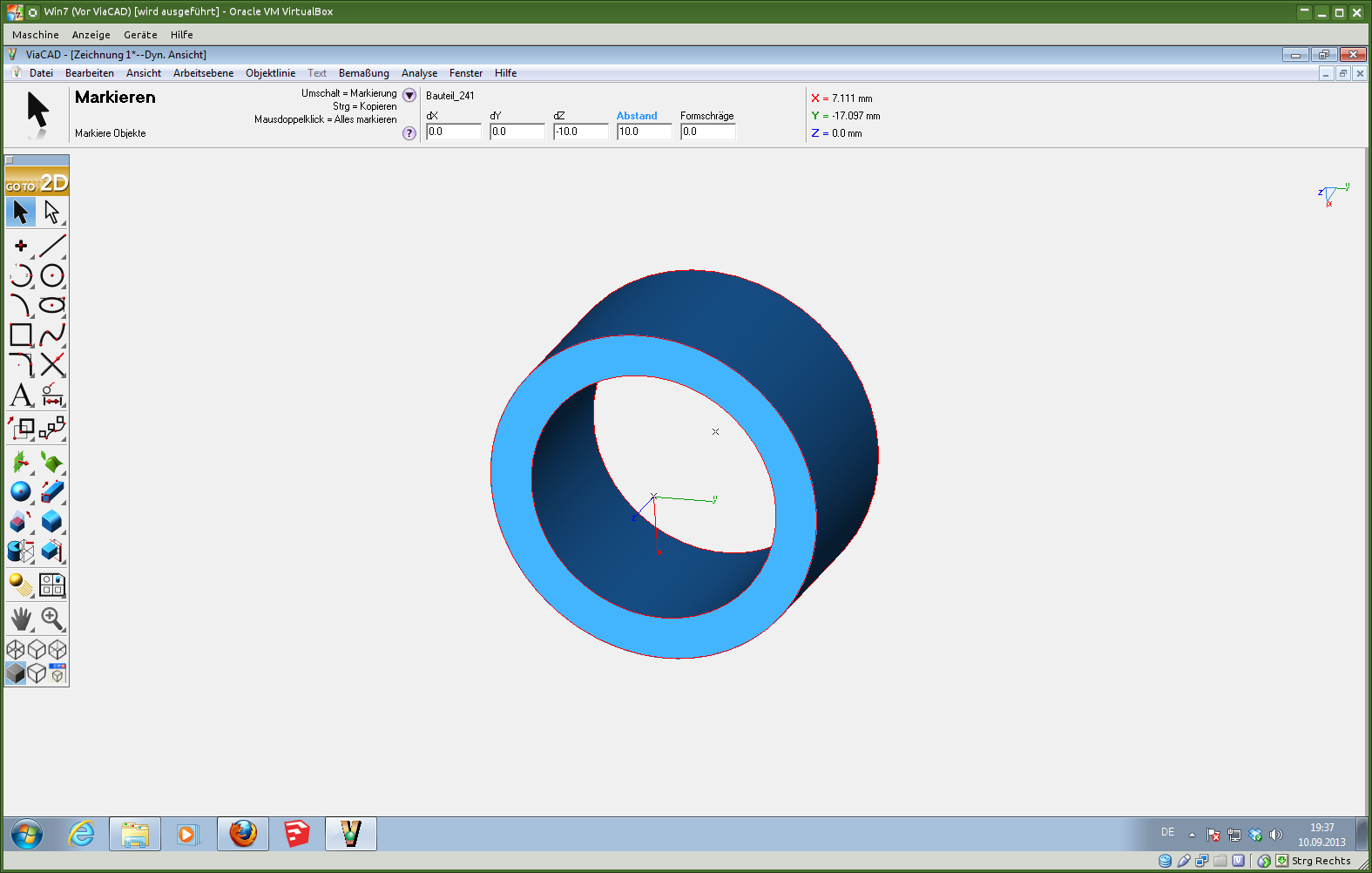 Ich bin bei der Suche nach einem CAD-Programm auf ViaCAD gestoßen. Leider ist es ein Windows/MAC Programm, so dass ich es in einer virtuellen Windows7-Maschine laufen lassen muss.